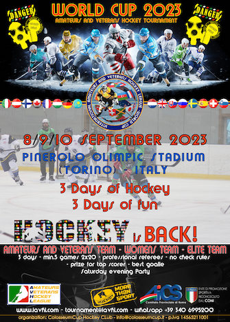 La International Amateur and Veterans Hockey League in collaborazione con Colosseum Cup Hockey Club organizza la prima edizione di “Amateur World Cup” – questa coppa del modo non è un evento ufficiale di alcuna federazione, è un torneo privato per Amatori e Veterani.