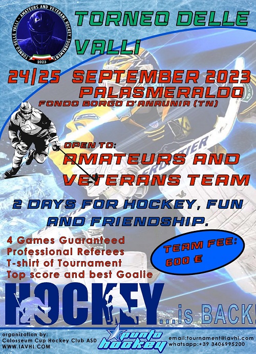Un bellissimo torneo internazionale aperto a 8 Team Amatori e veterani subito dopo la pausa estiva, un ultima occasione per divertirsi spassionatamente prima di affrontare di nuovo l’inverno e i propri campionati , un evento ricco di divertimento, sport, musica, buon cibo e , un evento per conoscere nuovi amici e confrontarsi con loro sul ghiaccio.